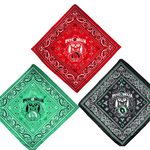 Add a touch of style with Psycodelia's Demon bandana, available in three vibrant colors: black, red, and green. Its versatile design is ideal for complementing any look.
