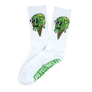 Complete your look with Psycodelia's white ankle socks. Each pair features unique designs with the brand's iconic characters, combining comfort and personality with every step.