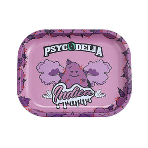 Organize your sessions in style with Psycodelia's Strains Metal Tray. Designed with exclusive graphics, it is available in three unique models: Indica, Hybrid, and Sativa. With a practical size of 5.1 x 7.1 inches, it is perfect for any space.