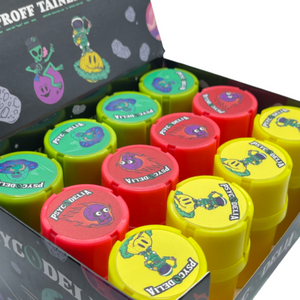 Discover the functionality of Psycodelia's Psyco-Tainer, a Med-Tainer style grinder that combines the ability to grind your flower with a practical container for storing it. Compact and portable, it's ideal for keeping everything in one place. Available in three vibrant colors: yellow, red, and green.